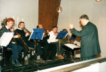 Die Wurzeln unseres Posaunenchors liegen im CVJM-Alsterchor, den Werner Hobusch zur Zeit der Gemeindegründung leitete. Werner lebte damals im Gemeindegebiet und gehörte später auch dem 1. Kirchenvorstand an. Die Einweihungsfeier der Emmauskirche wurde noch vom Posaunenchor der "Muttergemeinde" Kreuzkirche begleitet. Bereits 1966 übernahm Werner mit 9 Aushilfsbläsern den Bläserdienst beim Kirchweihfest. 1967 begann Werner in Kooperation mit dem Alsterchor mit der Bläserarbeit in der Emmausgemeinde. Aktuell bläst immer noch ein Bläser in unserem Posaunenchor, der ab 1968 von Werner ausgebildet wurde. Der CVJM-Alsterchor entschied sich bald für die Emmausgemeinde als neue Wirkungsstätte. Der Posaunenchor Emmaus Hinschenfelde war gegründet.