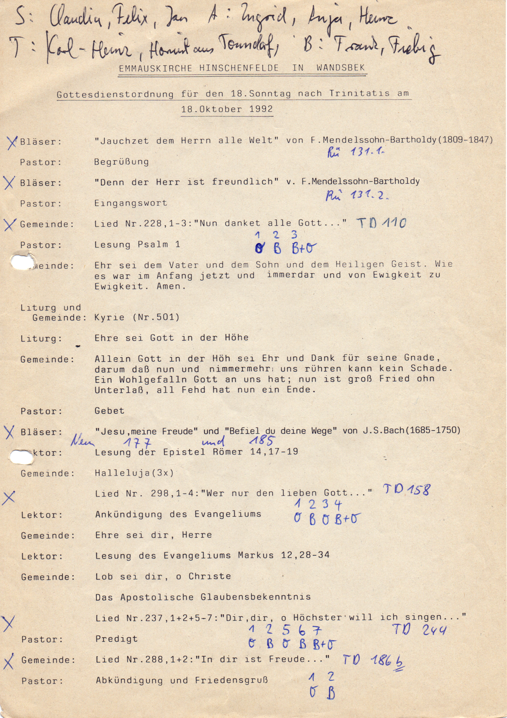 Mit Aufgabe der Emmauskirche und Fusion der vier Kirchengemeinden hat sich für mich (Christian Schön) die Notwendigkeit ergeben, uns eine neue Heimatkirche zu suchen. Mit den Posaunenchören in Tonndorf und an der Kreuzkirche sowie der Brass-Band St. Stephan wird auch die neue Gemeinde „Kirche im Wandsetal“ in den verbleibenden drei Kirchen eine großartige Bläserarbeit anbieten können.